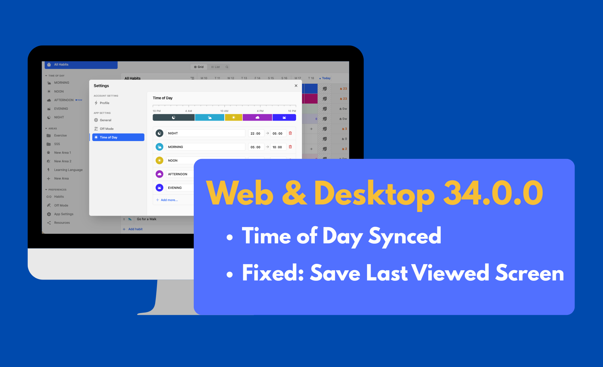 We understand that your energy levels and focus change throughout the day. With our new Time of Day settings, you now have granular control over how your habits are grouped and displayed.