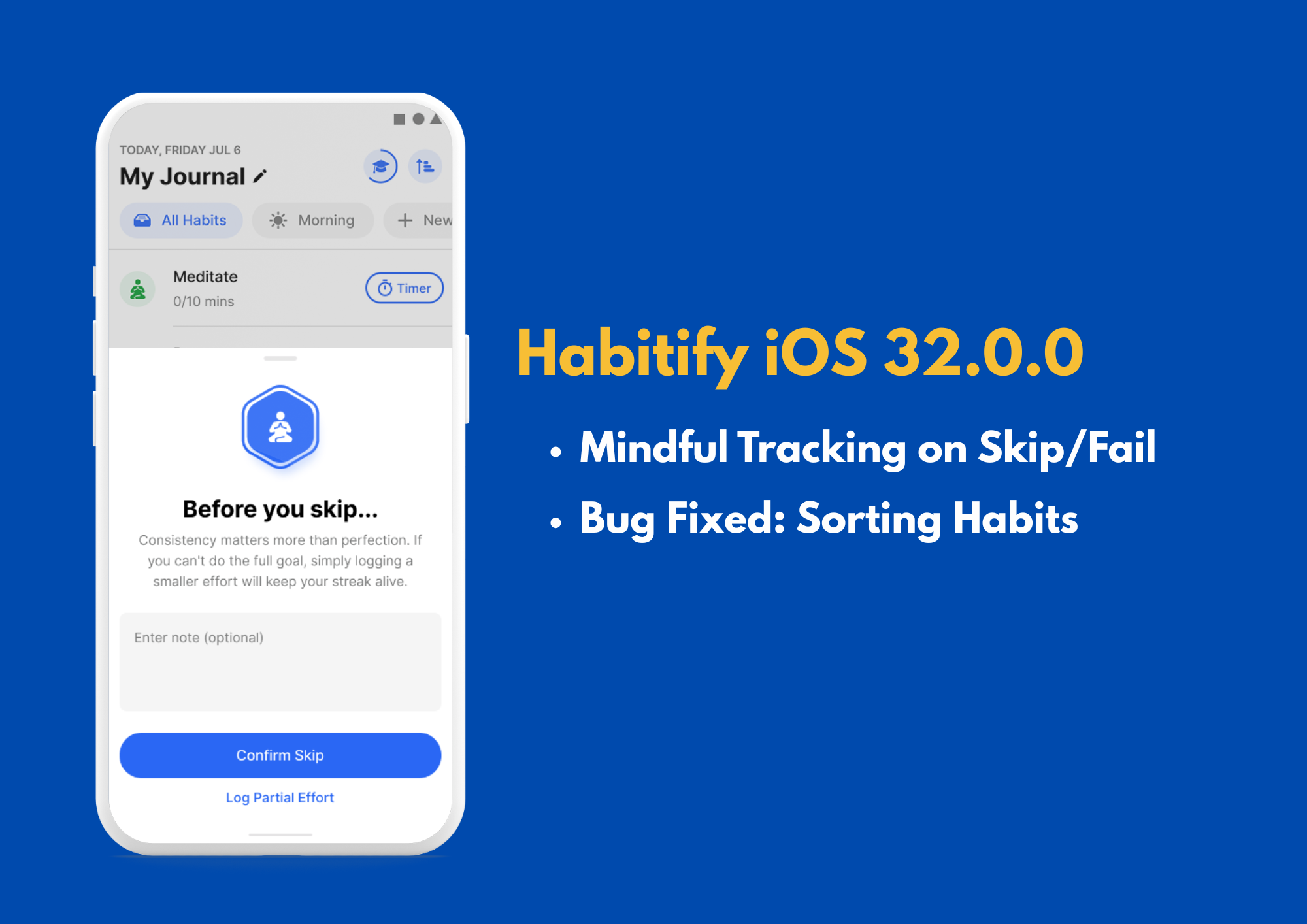 We are rolling out Habitify v32.0 for iOS today! This update focuses on two things: protecting your progress and keeping your dashboard organized. We’ve refined the logic behind habit tracking and squashed some pesky bugs to make your experience smoother than ever.