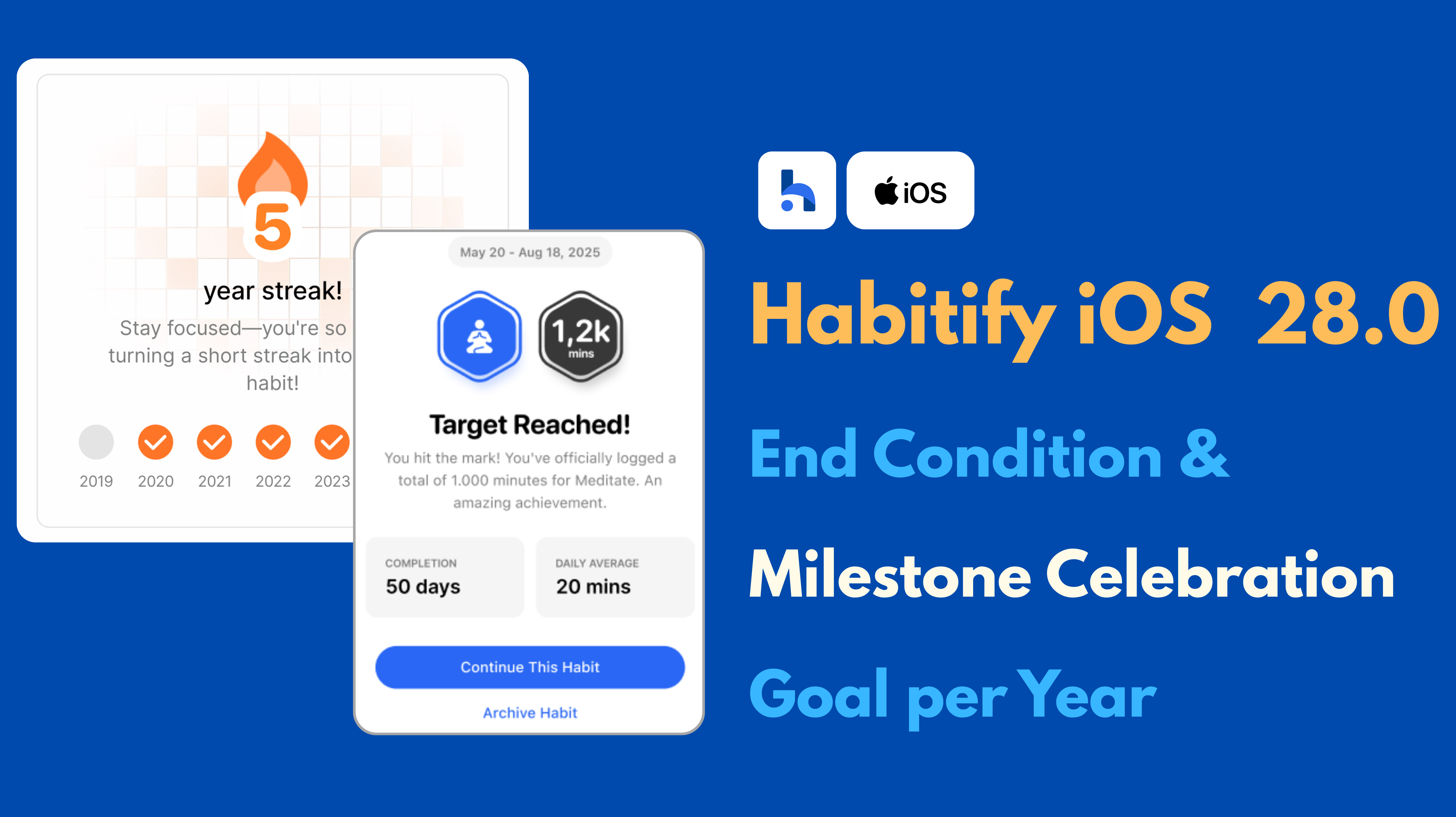 Ever wanted to tackle a short-term challenge without having a habit clutter your list forever? Now you can! Introducing End Conditions for habits you want to track for a limited time.