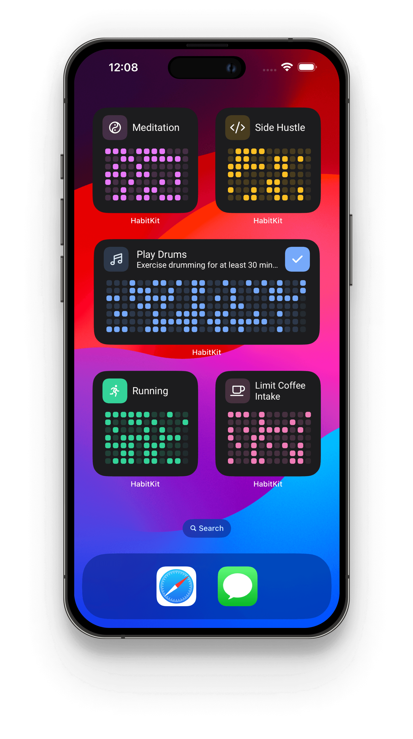 I’d like more visually appealing and information. HabitKit’s widgets are really visually appealing, showing heatmaps based on week, month, or year, based on widget size.
